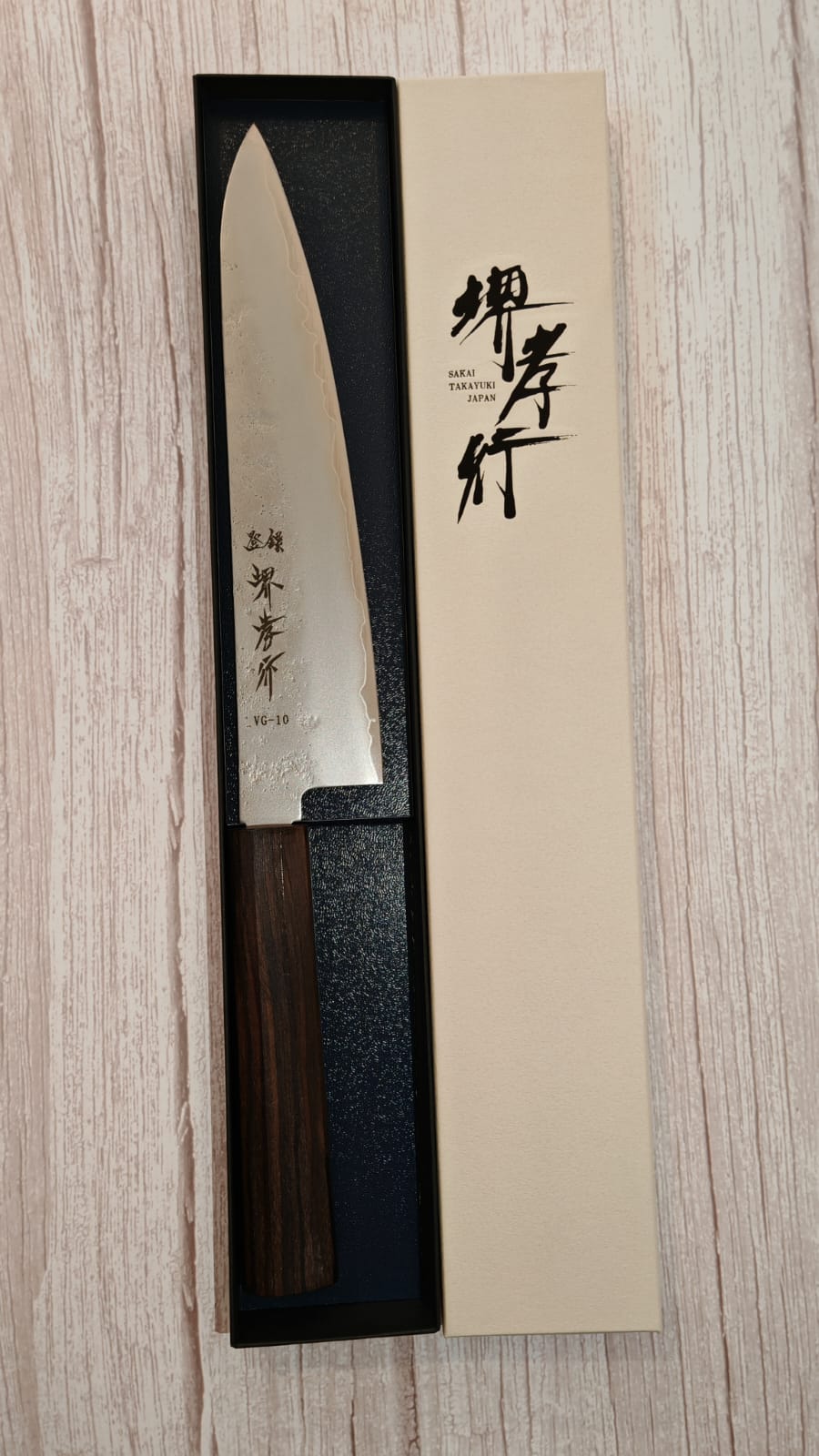 Sakai Takayuki Gyuto VG10 Nashiji, Ebony Integrated Handle 210mm